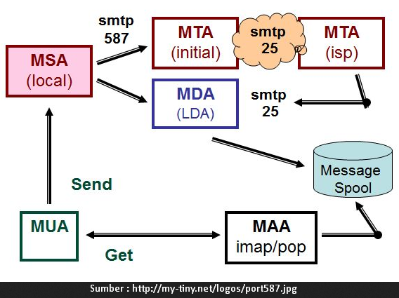 Pada dasarnya mail server memiliki tiga aplikasi atau protokol utama yaitu SMTP (Simple Mail Transfer Protocol), POP3 (Post Office Protocol V3) dan IMAP SMTP.