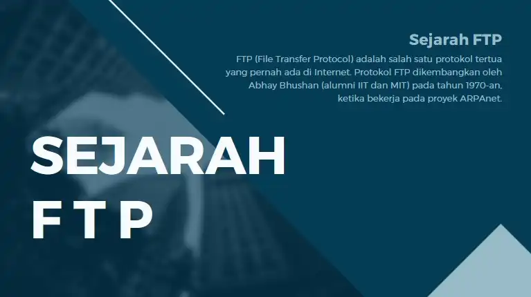 FTP (File Transfer Protocol) adalah salah satu protokol tertua yang pernah ada di Internet. Protokol FTP dikembangkan oleh Abhay Bhushan (alumni IIT dan MIT) pada tahun 1970-an, ketika bekerja pada proyek ARPAnet. Namun demikian, FTP tetap menjadi jenis layanan yang kerap kali dimanfaatkan oleh pengguna Internet, terutama untuk mendownload software atau hal-hal lain.