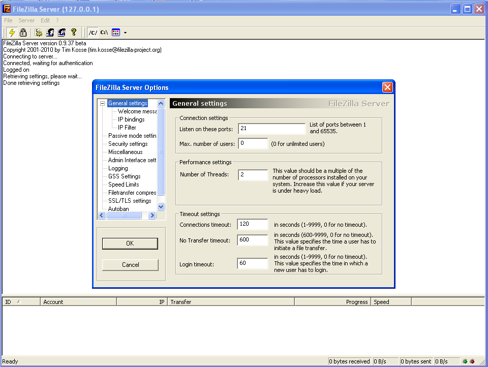 Gambar FTP Server Filezilla pada SO Windows
