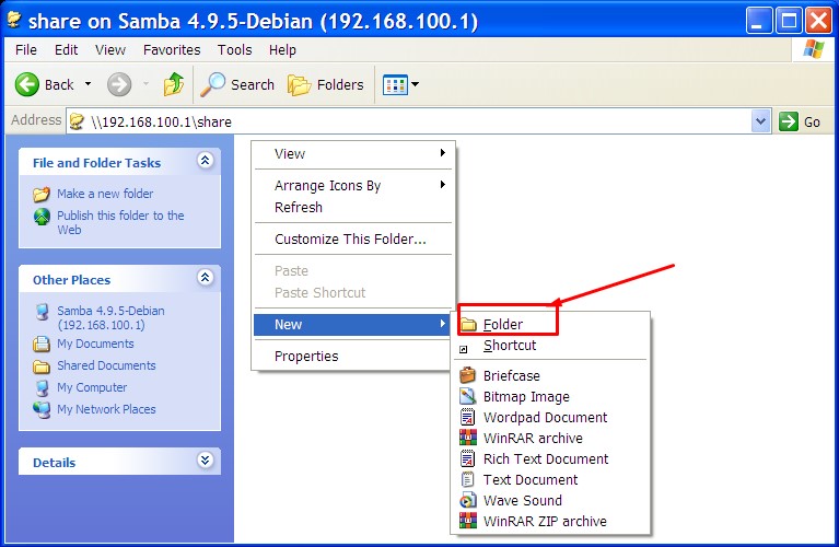 Gambar. Akses folder shareKita coba untuk membuat satu folder dengan cara klik kanan kemudian pilih New Folder