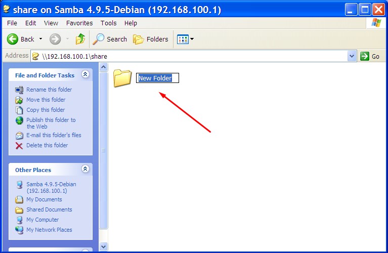 Gambar. Jendela user authentication Samba ServerKita coba untuk membuat satu folder dengan cara klik kanan kemudian pilih New Folder