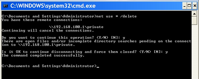 Langkah terakhir kita dapat logout atau mengakhiri koneksi dengan samba server dengan menggunakan perintah net use