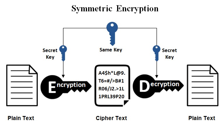 Enkripsi simetris biasa dikenal dengan nama enkripsi kunci bersama (shared key). Sesuai dengan namanya, enkripsi simetris merupakan jenis enkripsi memanfaatkan kunci untuk melakukan dekripsi maupun enkripsi data yang dipertukarkan antara client dan server.