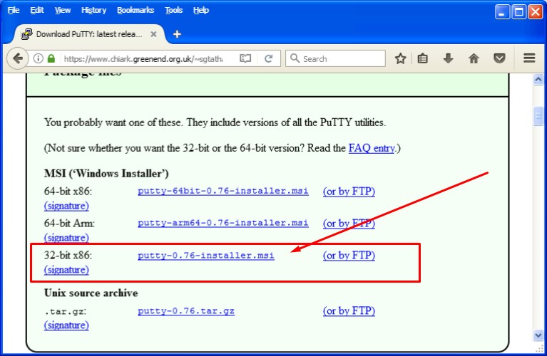 Gambar. Memilih aplikasi PuTTY 32-bit