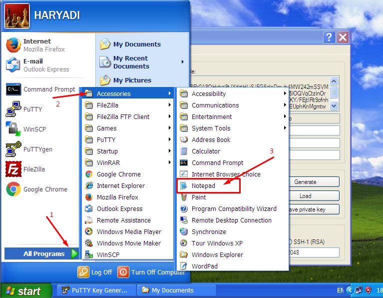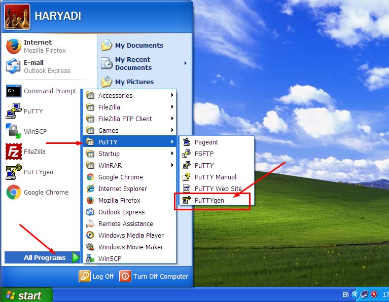 Jalankan aplikasi PuTTYgen Klik Start – All Program – PuTTY – PuTTYgen