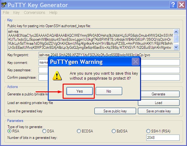 Gambar.4 Proses generate SSH key menggunakan aplikasi PuTTYgenJika ada peringatan yang muncul silahkan klik Yes