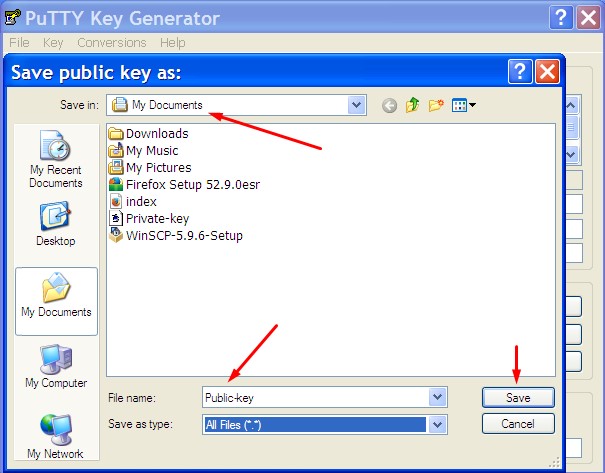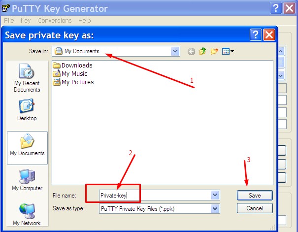 Untuk selanjutnya kita akan menyimpan file public key dan private key di komputer, letakkan di folder yang aman dan mudah dingat, untuk berjaga-jaga jika sistem operasi windows mengalami masalah dan harus diinstall ulang maka file public dan private key tetap aman.Selanjutnya klik Save private key.