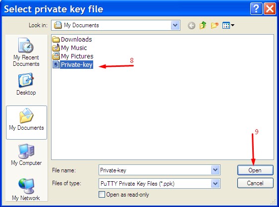 Gambar. aplikasi PuTTYKlik file Private-key – lalu klik tombol Open