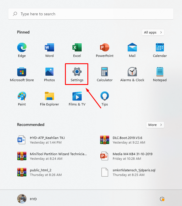Langkah 1. Klik tombol Start Windows 11 dan pilih “Settings.”