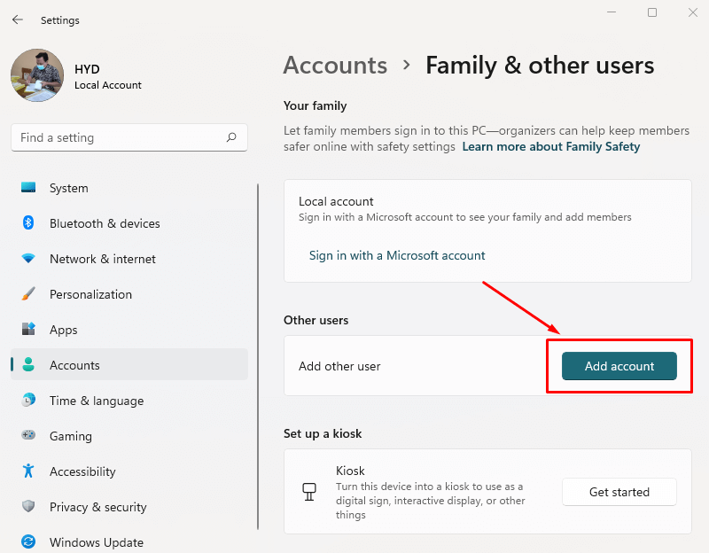 Langkah 4. Pada halaman berikutnya, klik pada ‘Add account’ tombol di belakang Tambahkan pengguna lain.