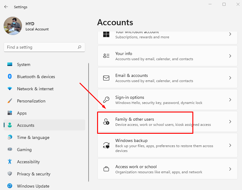 Langkah 3. Di panel kanan, klik pada ‘Family & other users’.