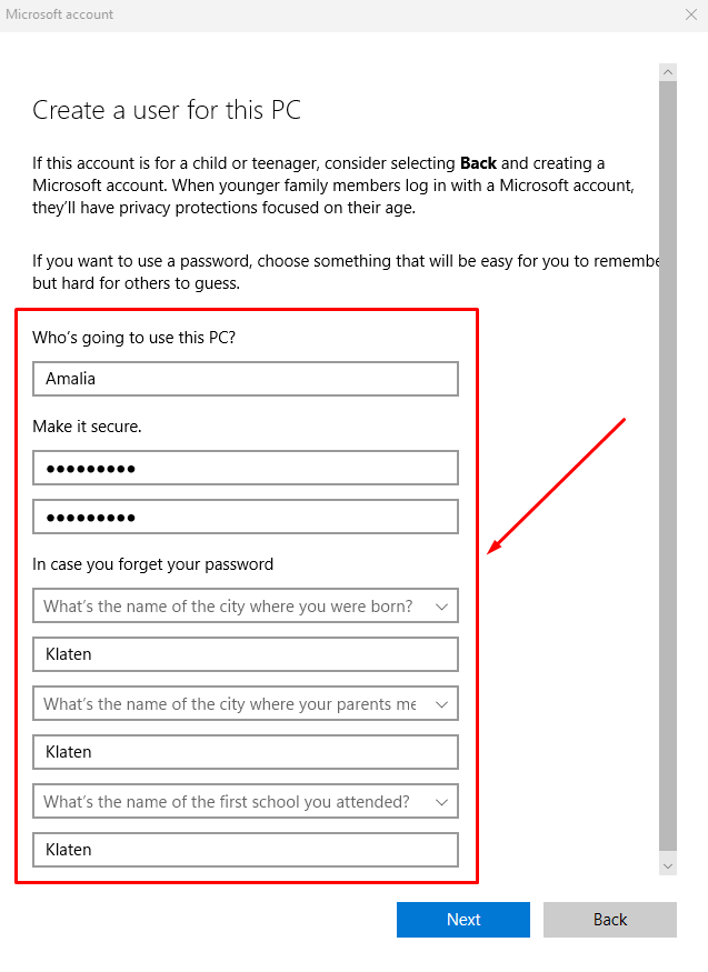Langkah 7. Anda harus memasukkan informasi pengguna untuk akun lokal di halaman berikutnya. Masukkan nama pengguna, kata sandi, petunjuk kata sandi, dan klik ‘Next‘ tombol.
