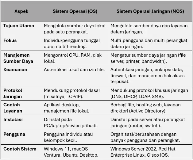 Perbedaan Sistem Operasi (OS) dan Sistem Operasi Jaringan (NOS)